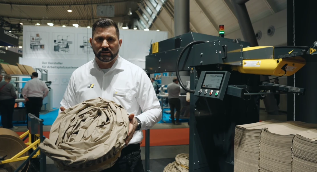 Avec le PaperJet® Winder, nous mettons en avant au salon LogiMAT un système de calage du papier qui fait valoir ses avantages, notamment dans le contexte industriel. Le système produit des coils papier qui peuvent être adaptés aux produits à expédier grâce à l’utilisation de différentes qualités de papier et à d’autres paramètres de système. De quoi garantir une protection adaptée au produit, d’éviter les dommages pendant le transport et de réduire considérablement le taux de retours.